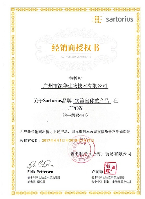 德國賽多利斯授權(quán)書 賽多利斯一級代理商 賽多利斯廣東辦事處 賽多利斯廣東售后維修站