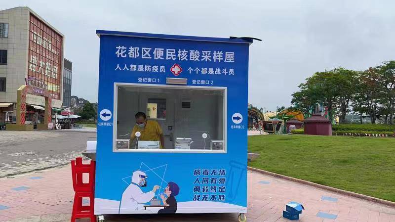 5月23日,花都區(qū)添置第一批5個(gè)專(zhuān)用核酸采樣屋,分別放置在來(lái)又來(lái)商場(chǎng)、新世紀(jì)廣場(chǎng)、融創(chuàng)樂(lè)園、雅樂(lè)城廣場(chǎng)、花東市場(chǎng),當(dāng)天下午3時(shí)正式投入使用,受到市民群眾的熱烈歡迎,這也是 廣州市第一批專(zhuān)用核酸采樣亭。